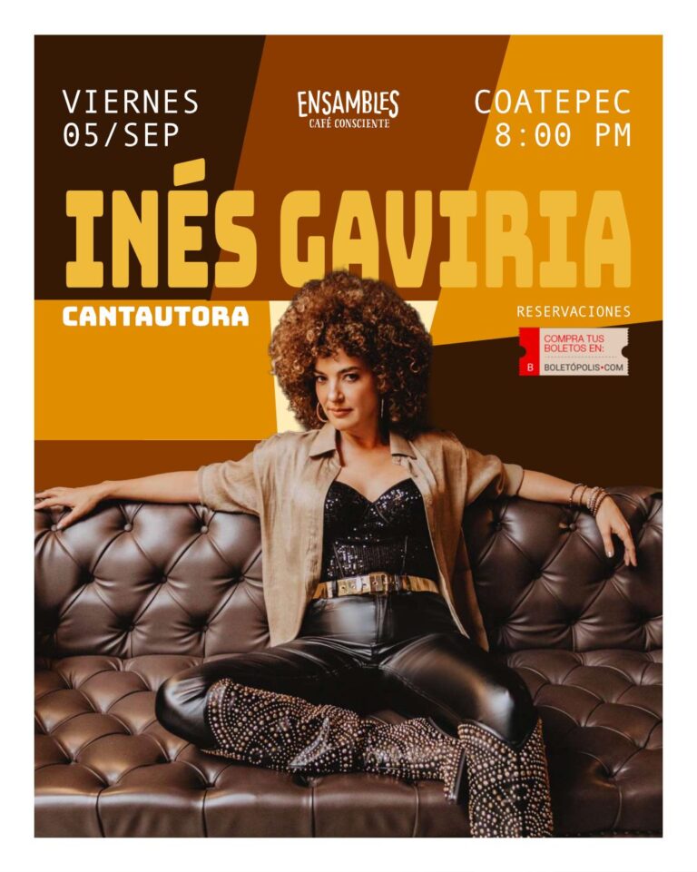 El próximo 5 de septiembre, la reconocida cantautora colombiana Inés Gaviria se presentará en Ensambles Café Consciente de Coatepec, Veracruz, en un concierto especial que dará inicio a las 8:00 p.m. La velada promete ser una experiencia musical única, cargada de sensibilidad y cercanía, en un espacio que apuesta por el arte y la cultura en un ambiente íntimo.