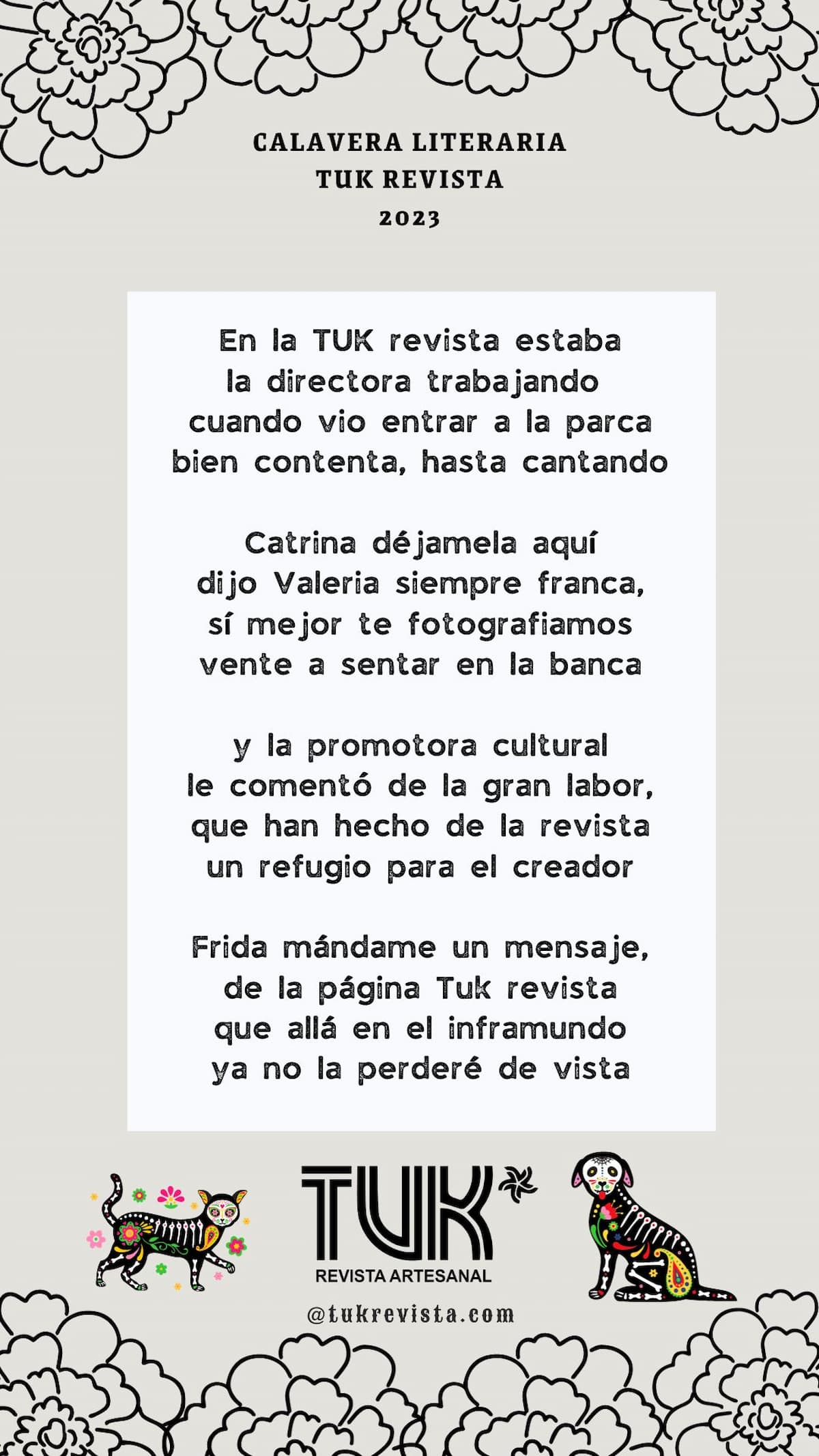 “Gracias leales lectores, por leer TUK REVISTA, la muerte no es el final, es solo una nueva vista.”